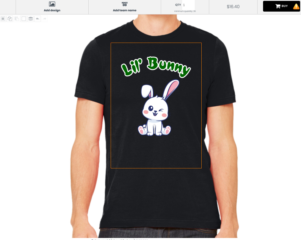 Maximum Print Size – Artwork must not exceed print area for garment. Please review the print areas each garment in the online designs.