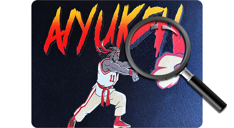 Stretchability and Comfort – DTF prints are flexible and stretch with the fabric, reducing the chances of cracking and keeping garments comfortable to wear. While large block of design are not recommended, most designs have enough empty space around their design to not cause any issues.